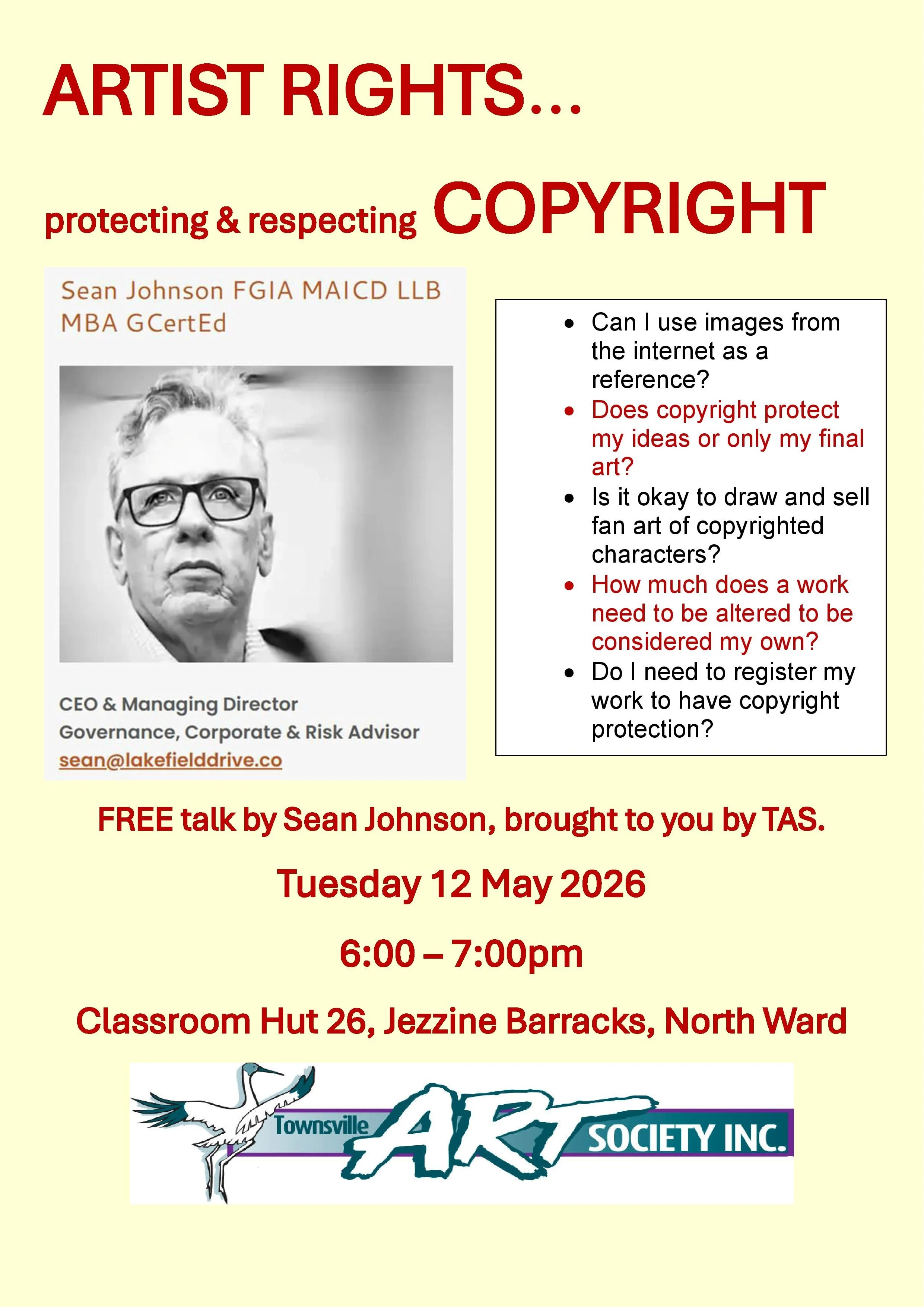 For Townsville Art Society Members and invited guests: